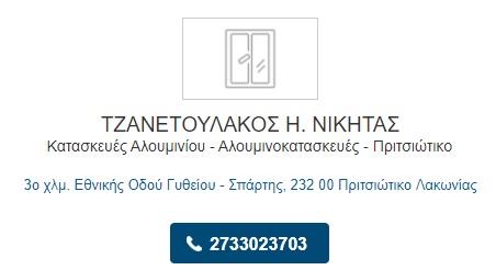 ΤΖΑΝΕΤΟΥΛΑΚΟΣ ΝΙΚΗΤΑΣ ΑΛΟΥΜΙΝΙΑ ΓΥΘΕΙΟ Published 24 Μαρτίου 2018 at 452 × 246 in υ α λ ο τ ε χ ν ι κ ή Παπαϊωάννου