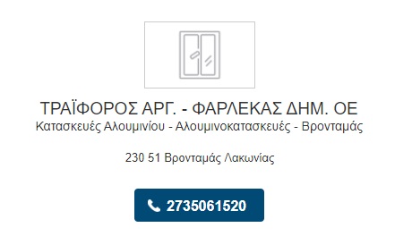 ΤΡΑΪΦΟΡΟΣ ΦΑΡΛΕΚΑΣ ΑΛΟΥΜΙΝΙΑ ΒΡΟΝΤΑΜΑΣ ΛΑΚΩΝΙΑΣ Published 24 Μαρτίου 2018 at 460 × 264 in υ α λ ο τ ε χ ν ι κ ή Παπαϊωάννου