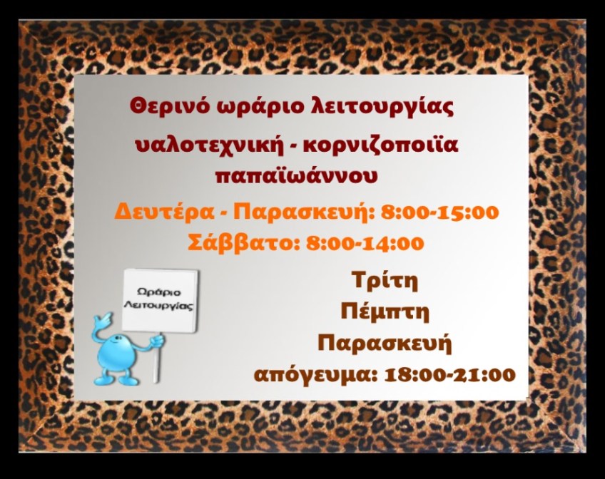 ΘΕΡΙΝΟ ΩΡΑΡΙΟ ΛΕΙΤΟΥΡΓΙΑΣ ΥΑΛΟΤΕΧΝΙΚΗ ΚΟΡΝΙΖΟΠΟΙΪΑ ΠΑΠΑΪΑΝΝΟΥ Published 18 Απριλίου 2018 at 892 × 707 in Επικοινωνία