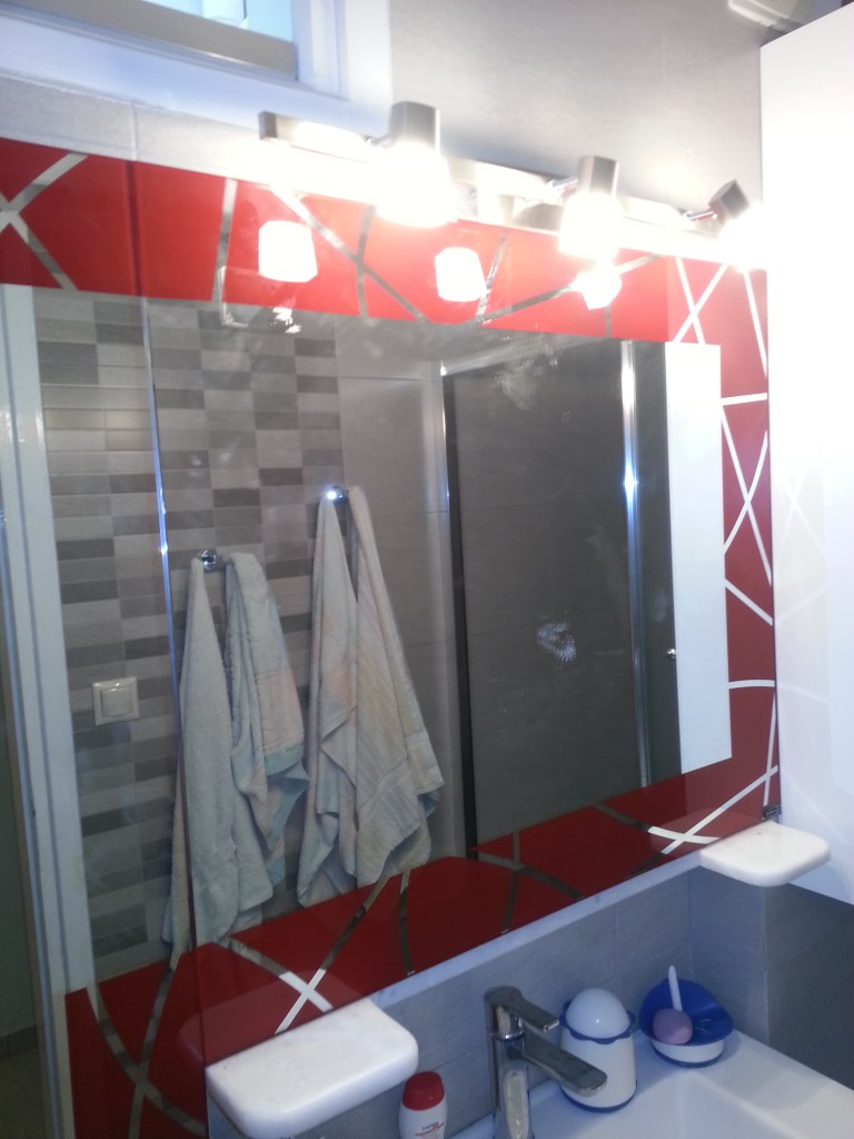 Καθρέφτης με κόκκινη βαφή και σχέδιο
