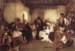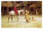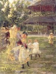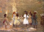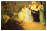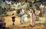 - Ο ζωγράφος απεικονίζει στιγμιότυπα και έθιμα από τη ζωή των απλών ανθρώπων με μία ιδεαλιστική διάθεση, αλλά και αμεσότητα, και παράλληλα με εθνογραφικό ενδιαφέρον. Στις περισσότερες ελληνικές ηθογραφίες του Γύζη το παιδί είναι μια ουσιαστική παρουσία μέσα στο έργο και η απόδοση του αναδεικνύει το ζωγράφο οξύ παρατηρητή των «αποχρώσεων» του παιδικού ψυχισμού. Στα «Αρραβωνιάσματα των παιδιών», που και ο ίδιος ο καλλιτέχνης εκτιμούσε πολύ, δεν μπορεί να μην σταθεί κανείς. Εδώ εικονογραφεί ένα παλιό έθιμο, με ιδιαίτερη ιστορική βαρύτητα στην εποχή της Τουρκοκρατίας. Είναι έκδηλη η έγνοια του ζωγράφου να καταγράψει με όσο το δυνατό μεγαλύτερη περιγραφική ακρίβεια το γεγονός, το χώρο, τις φορεσιές, και εδώ βλέπουμε αβρά, εξευγενισμένα γυναικεία και παιδικά πρόσωπα που πρωταγωνιστούν σε πολλές ελληνικές σκηνές του καλλιτέχνη, μάρτυρες κι αυτά της έμφυτης ιδεαλιστικής ροπής του. Ένας Γερμανός τεχνοκρίτης έγραφε, σχολιάζοντας το έργο αυτό, το 1897: «Πόσον επιτυχώς κατώρθωσε εις τους Αρραβώνας των παίδων να αναπαραστήσει το πρόωρον εκείνο ερύθημα, τον ισχυρόν αυτόν φυσικόν προμαχώνα της γυναικείας αρετής. Αλλά η σοβαρότητα του γέροντος ιερέως, η επισημότης της τελετής και η γενική προσήλωση εις το παιδί, δίδουν μιαν σημασίαν εις το μικρόν του άτομον και του αφυπνίζουν εν αίσθημα ιδίας αξίας, σκεπτικισμού και συστολής.» Ο καλόγερος και το μικρό κορίτσι επανέρχονται και σε άλλους πίνακες του Γύζη. Πηγή: Αφροδίτη Κουριά, Ιστορικός Τέχνης, «Το παιδί στην Νεοελληνική Τέχνη (1833-1922) Εικόνες-Αντιλήψεις», Ίδρυμα Ερευνών για το παιδί, Εκδόσεις Δωδώνη, Αθήνα-Γιάννινα 1985, Δημ.Κεντρ.Βιβλ.Σπάρτης