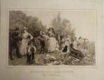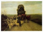 - Ζαν Φρανσουά Μιλλέ, Οι σταχομαζώχτρες, 1857, Λάδι πάνω σε μουσαμά, 83,8 x 111 εκ. Μουσείο Ορσαί, Παρίσι. Στις ακαδημίες ίσχυε η ιδέα πως τα αξιοπρεπή έργα έπρεπε να παριστάνουν αξιοπρεπή πρόσωπα και πως οι εργάτες και οι χωρικοί ήταν κατάλληλα θέματα μόνο για έργα ηθογραφίας στην παράδοση των Ολλανδών δασκάλων. Την Εποχή της Επανάστασης του 1848, μια ομάδα καλλιτεχνών συγκεντρώθηκε στο γαλλικό χωριό Μπαρμπιζόν, για να ακολουθήσει τις ιδέες του Κόνσταμπλ, κοιτάζοντας τη φύση με καινούρια μάτια. O Francois Millet (1814-1875) είχε την ιδέα να χρησιμοποιήσει στις ανθρώπινες μορφές του τις αρχές του Κόνσταμπλ για το τοπίο. Ήθελε να ζωγραφίσει επεισόδια από τη ζωή των χωρικών όπως ήταν πραγματικά, να ζωγραφίσει άντρες και γυναίκες να δουλεύουν στα χωράφια. Είναι περίεργο σήμερα το ότι μια τέτοια πρόθεση θεωρήθηκε επαναστατική, στην τέχνη όμως του παρελθόντος οι χωρικοί ήταν γενικά πρόσωπα κωμικά, όπως τους είχε ζωγραφίσει ο Μπρέγκελ. Το έργο Σταχομαζώχτρες, δεν υπάρχει δραματικό επεισόδιο, ούτε η εικονογράφηση κάποιας ιστορίας. Απλώς τρείς μορφές που δουλεύουν σκληρά σε ένα χωράφι όπου γίνεται ο θερισμός. Οι τρεις γυναίκες δεν είναι ούτε όμορφες ούτε χαριτωμένες. Δεν υπάρχει τίποτα στην εικόνα που να αναφέρεται σε κάποιο βουκολικό ειδύλλιο. Οι γυναίκες κινούνται αργά και βαριά, αφοσιωμένες στη δουλειά τους. Ο Μιλλέ έκανε ότι μπορούσε για να δώσει έμφαση στην τετράγωνη, βαριά φτιαξιά τους και τις μετρημένες τους κινήσεις. Τις έπλασε στέρεα, με απλά περιγράμματα, με φόντο τη φωτεινή, ηλιόλουστη πεδιάδα. Έτσι, οι τρεις του χωριάτισσες απέκτησαν μιαν αξιοπρέπεια πιο φυσική και πιο πειστική από τους ακαδημαϊκούς ήρωες. Η διάταξη, που με την πρώτη ματιά μοιάζει τυχαία, υπογραμμίζει αυτή την εντύπωση της ήρεμης στάσης. Υπάρχει ένας υπολογισμένος ρυθμός στην κίνηση και στην τοποθέτηση των μορφών, που δίνει σταθερότητα στην όλη σύνθεση και μας κάνει να νιώσουμε πως ο ζωγράφος αντιμετώπισε την εργασία του θερισμού σαν ένα επεισόδιο επίσημο και σημαντικό. Ήθελε να μας κάνει να καταλάβουμε την αξιοπρέπεια του μόχθου. Πηγή: E.H.Gombrich, Το Χρονικό της Τέχνης, Μορφωτικό Ίδρυμα Εθνικής Τράπεζας, Αθήνα 1999, Δημ.Κεντρ.Βιβλ.Σπάρτης