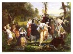 - Το 1865 ο Λύτρας στρέφει αποφασιστικά τη ματιά του στον ελληνικό χώρο και στους απλούς ανθρώπους του τόπου του και αρχίζει να καταγράφει στιγμιότυπα της καθημερινής ζωής του, συνήθειες και έθιμα με αφηγηματική, περιγραφική διάθεση αλλά και αμεσότητα. Πέρα από τα πρόσωπα και το χώρο, ο Λύτρας ενδιαφέρεται να αποτυπώσει και τις διάφορες τοπικές ενδυμασίες με όλη τη γραφικότητα και τα στολίδια τους. Στα χρόνια αυτά θεμελιώνεται η επιστήμη της λαογραφίας με τις εργασίες του Νικόλαου Πολίτη. Η πρώτη, ίσως, γνήσια ελληνική ηθογραφία είναι το έργο του Λύτρα «Επιστροφή από το πανηγύρι της Πεντέλης» (γύρω στα 1870), το οποίο δανείζεται στοιχεία από τον πίνακα του Γερμανού ζωγράφου Peter Von Hess, επιστροφή μιας Αθηναϊκής οικογένειας μετά το τέλος της επανάστασης. Ο πατέρας καθισμένος στο ζώο, παίζει το μουσικό όργανο και τραγουδά. Λίγο πιο μπροστά προχωρεί ο μικρός γιός, ντυμένος τη φουστανέλα, που συνοδεύει τον πατέρα του με τη φλογέρα και ανάμεσά τους η νεαρή μάνα με την τοπική φορεσιά, έχοντας στους ώμους το μικρότερο παιδί, που όλο χαρά κρατά την κουλούρα του σαν τρόπαιο στο υψωμένο του χέρι. Η εικόνα του άνδρα πάνω στο ζώο και της γυναίκας που προχωρεί με τα πόδια, φορτωμένη μάλιστα το παιδί, είναι πιστή καταγραφή της ελληνικής πραγματικότητας. Πηγή: Αφροδίτη Κουριά, Ιστορικός Τέχνης, «Το παιδί στην Νεοελληνική Τέχνη (1833-1922) Εικόνες-Αντιλήψεις», Ίδρυμα Ερευνών για το παιδί, Εκδόσεις Δωδώνη, Αθήνα-Γιάννινα 1985, Δημ.Κεντρ.Βιβλ.Σπάρτης