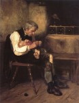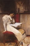 - Τα παιδιά με τη σοβαρή έκφραση, τα προσηλωμένα στη μελέτη τους, είναι οι πρωταγωνιστές μιας ακόμη ομάδας έργων της νεοελληνικής ζωγραφικής. Ο Γύζης, σε ένα σαγηνευτικό πίνακά του, την Αποστήθιση 1883, (ιδ. Συλλ.) μία αστική ηθογραφία, απεικονίζει ένα καλοντυμένο μικρό κορίτσι που καθισμένο, με το βιβλίο στα γόνατα και ανασηκωμένο ελαφρά το κεφάλι, αποστηθίζει το μάθημά του. Το σφιγμένο στόμα, τα στυλωμένα λαμπερά μάτια «μιλούν» πολύ εύγλωτα και πειστικά για την προσπάθεια του παιδιού και την κρυφή ένταση που το κατέχει. Πηγή: Αφροδίτη Κουριά, Ιστορικός Τέχνης, «Το παιδί στην Νεοελληνική Τέχνη (1833-1922) Εικόνες-Αντιλήψεις», Ίδρυμα Ερευνών για το παιδί, Εκδόσεις Δωδώνη, Αθήνα-Γιάννινα 1985, Δημ.Κεντρ.Βιβλ.Σπάρτης